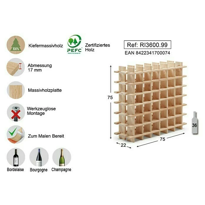 BAUHAUS Astigarraga Weinregal L X B X H: 75 X 22 X 75 Cm, Anzahl Flaschen: 36 Stk.