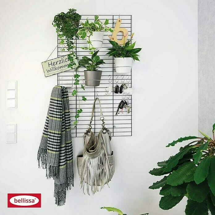 Mit dem Bellissa Wandgarten Gitter Fermo muss man künftig auch bei Platzmangel nicht mehr auf einen grünen Dschungel verzichten. So lassen sich mit geeigneten Halterungen Blumentöpfe mit Kräutern ebenso aufhängen wie Schlüssel, Besteck oder Dekoration. Das pulverbeschichtete Stahlgitter ist frostbeständig und damit für die Verwendung sowohl drinnen als auch draußen geeignet.