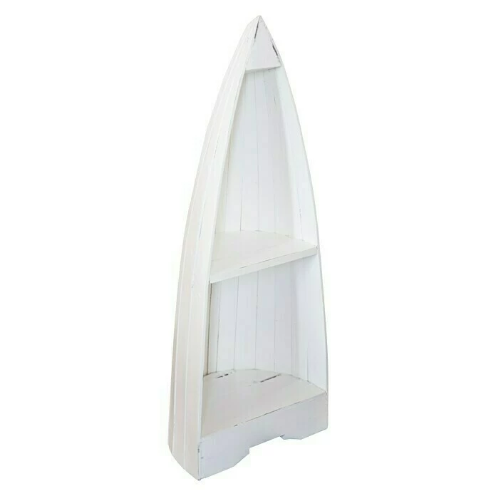 Das Standregal Mahagoni setzt stilvolle Akzente in jeder Umgebung. In Schiffsform designt schafft das Regal aus lackiertem Keruing Holz ein maritimes Flair. Auf seinen 2 Ablageböden bietet das Regal ausreichend Platz für Dekorationselemente, Bücher oder Fotos.