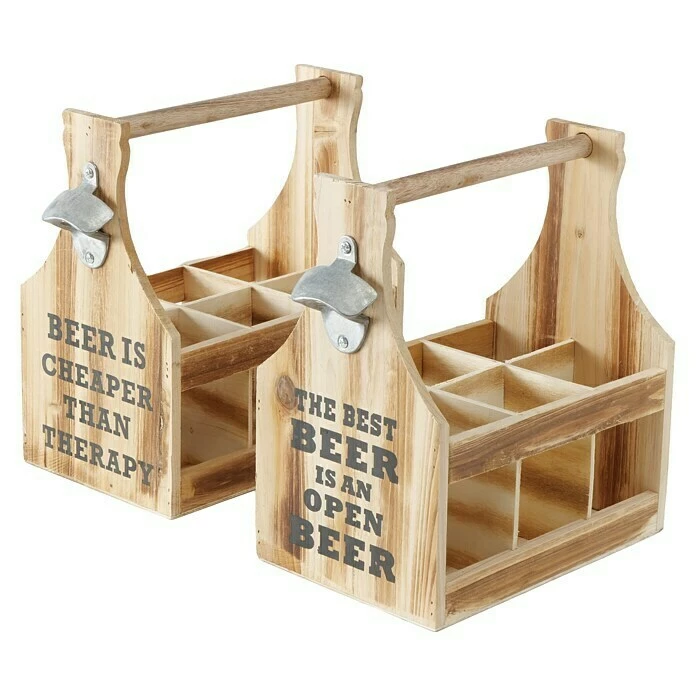 Der Flaschenträger bietet Platz für sechs Bierflaschen, die sicher voneinander abgegrenzt werden. Mit dem an der Seite angebrachten, praktischen Öffner kann das Feiern auch ganz spontan beginnen.