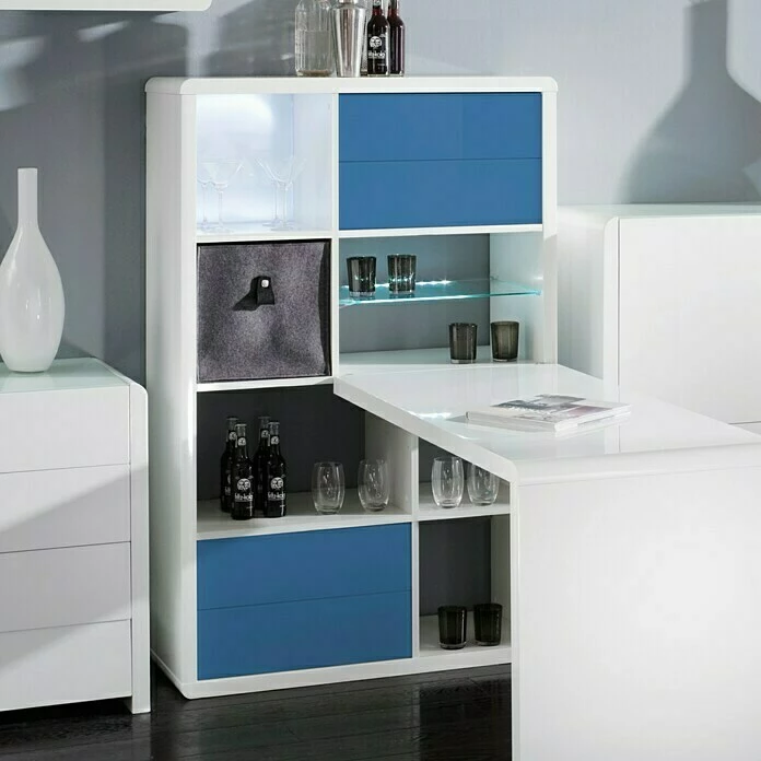 Das Regal Atlanta von Phönix setzt mit seinem schlichten und zeitlosen Design Akzente in jedem Wohnzimmer. Dabei verleihen ihm die abgerundeten Kanten eine weiche, organische Form. In Kombination mit anderen Möbeln der Serie Atlanta lassen sich auf diese Weise ganze Wohn-, Ess- oder Schlafzimmer modern einrichten. Es besitzt acht Fächer in unterschiedlichen Formgrößen die mithilfe von optional erhältlichen Filzboxen, Tür- oder Schubladencontainer der Atlanta Serie individuell gestaltet werden können. So kann das Wohnregal auf die unterschiedlichsten Bedürfnisse angepasst werden und eignet sich somit hervorragend für eine stilvolle Einrichtung.