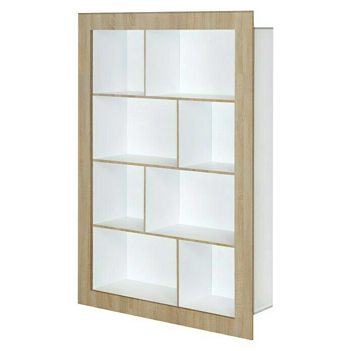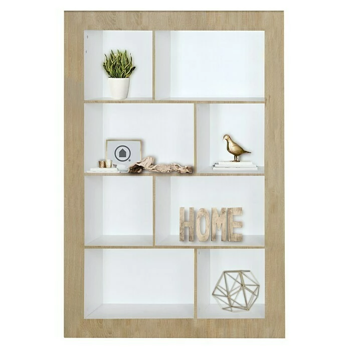 Das Regal Frame von Phönix besteht aus acht asymmetrisch angeordneten Fächern, welche Stauraum für Bücher, Aktenordner oder Deko-Elemente liefern. Der Rahmen und die Kanten sind farblich von den Fächern abgesetzt. Durch das schlichte Design kann es mit sämtlichen Möbeln kombiniert werden und eignet sich besonders für das Wohnzimmer.