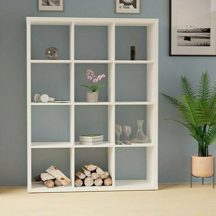 Das Regal bietet mit seinen zwölf Fächern nützlichen Stauraum für Kleidung, Bücher oder andere Utensilien auf geringer Grundfläche. Das Regal kann sowohl für den allgemeinen Wohnbereich als auch für Büro-, Schlaf- und Kinderzimmer verwendet werden. Es überzeugt neben seinem modern schlichten Design auch durch seine hohe Stabilität und die einfache Montage. Das Regal kann durch seine offene Gestaltung ebenfalls rein dekorativ oder als Raumtrenner genutzt werden.