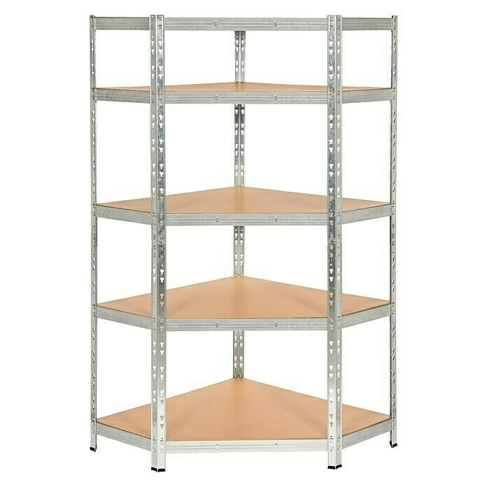 Das Metall-Schwerlast-Eckregal ist mit einer Traglast von 175 kg pro Boden das ideale Regal für Keller, Garage und Werkstatt. Dank seine Form gehören ungenutzte Ecken im Keller mit diesem Regal der Vergangenheit an. Ausgestattet mit insgesamt 5 Böden bietet es als Lagerregal viel Stauraum zu einem hervorragenden Preis-Leistungs-Verhältnis. Die hochwertige Qualität und eine hohe Stabilität sorgen für eine lange Lebensdauer und Sicherheit. Dank des praktischen Stecksystems lässt es sich schnell und einfach ohne Werkzeug montieren. Somit bietet das Schwerlastregal professionellen Stauraum auf hohem Niveau.