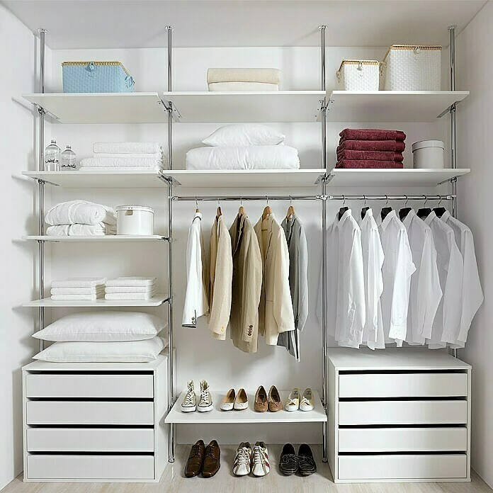 Die Room Plaza Inside Smart Regalbodenträger werden benötigt, um zusätzliche Fachböden oder einen Schubkastenblock mit zwei Laden an die Trägerrohr-Stollen des Inside Smart Regalsystems zu schrauben. Die Träger aus verchromtem Stahl können in beliebiger Höhe am Trägerrohr befestigt werden. Auf Maß gefertigte Room Plaza Raum- und Ausbausysteme sind exklusiv im BAUHAUS Fachcentrum bestellbar.