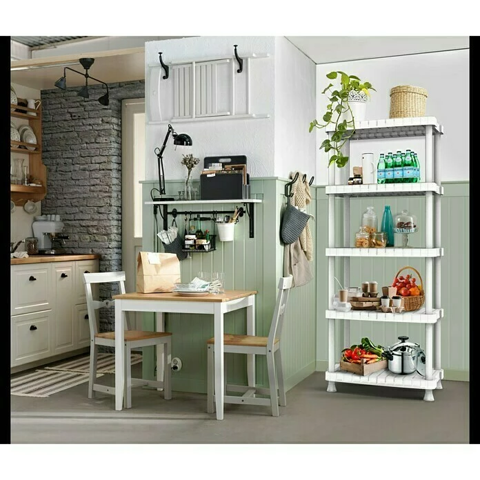 Das Kunststoffregal von Terry eignet sich besonders zur Lagerung und Aufbewahrung von Vorräten in der Küche oder Vorratskammern. Die fünf Regalböden bieten großzügigen Stauraum für die verschiedensten Utensilien. Da das Regal aus Kunststoff gefertigt ist, ist es besonders leicht und kann einfach gereinigt werden.