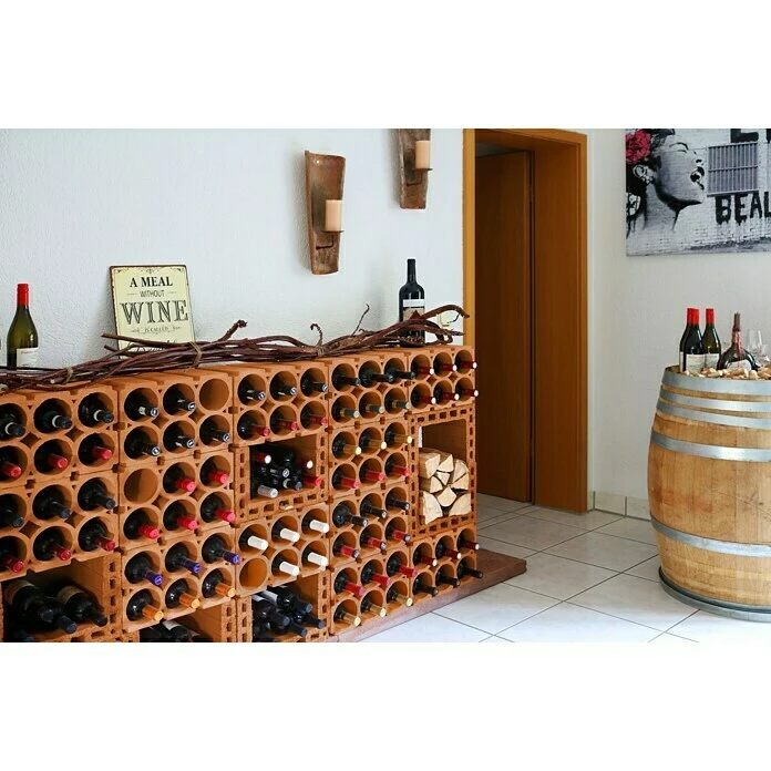 Der Weinregalstein besteht aus gebranntem Ton und ist uneingeschränkt im Innen- und Außenbereich einsetzbar. Durch die Kombination von mehreren Weinregalsteinen besteht die Möglichkeit, ein individuelles Flaschenregal genau nach den eigenen Vorstellungen zu errichten und somit findet der beste Tropfen jeweils problemlos darin seinen Platz. Werden mehrere Weinregalsteine dauerhaft aufeinander gestellt, so sollten diese mit Hilfe eines Klebers verbunden werden.