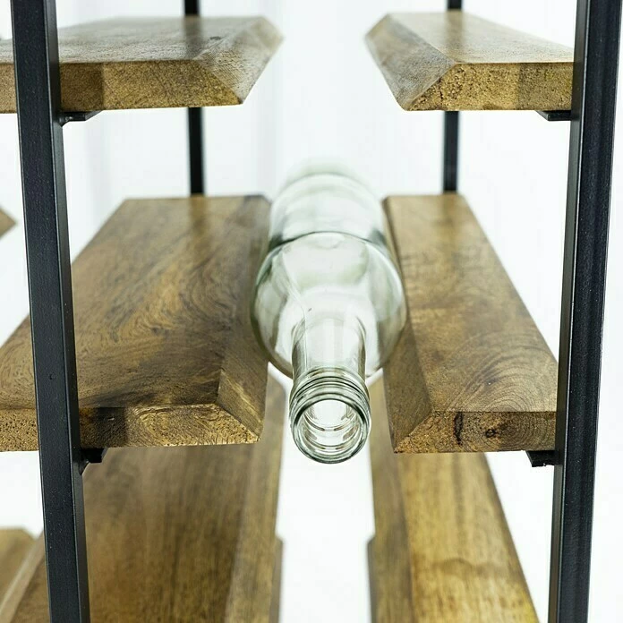 Das universell einsetzbare Wein- & Flaschenregal ist aus einem Stahlrahmen mit Mangoholz gefertigt und eignet sich zur Aufbewahrung für bis zu 8 Flaschen.
